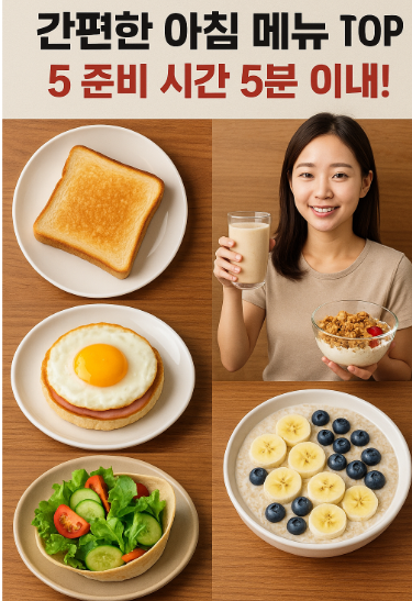 그래서 준비했습니다! 5분 만에 준비할 수 있는 간편한 아침 메뉴 TOP5를 소개해드릴게요.
