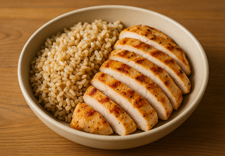 - 기반: 귀리밥, 퀴노아, 고구마 등 복합 탄수화물