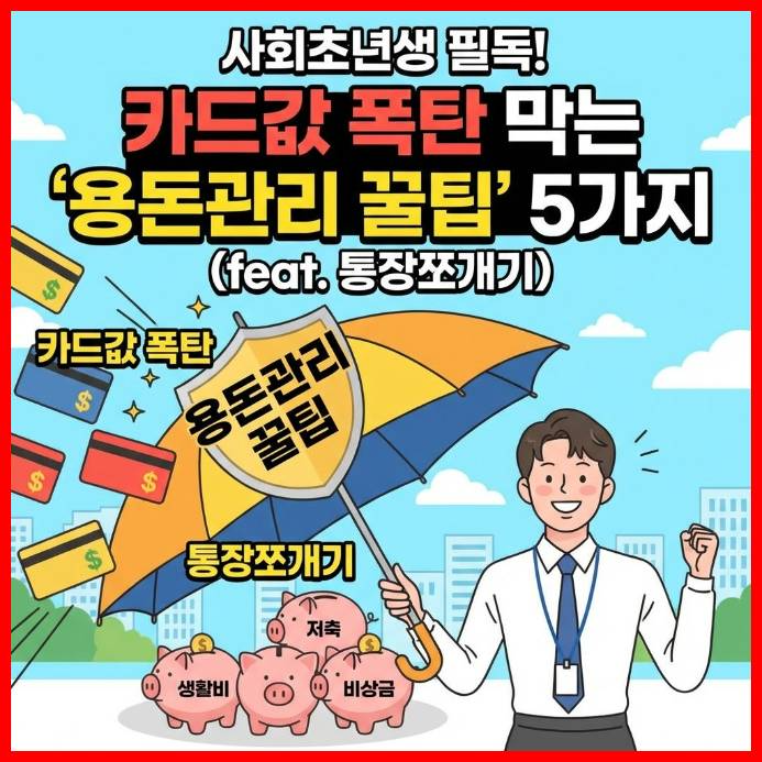 자, 오늘 사회초년생을 위한 카드값 폭탄 막는 용돈관리 꿀팁 5가지와 통장 쪼개기 방법을 자세히 알아봤습니다.