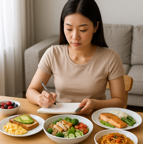 - 현미밥 반 공기 + 닭가슴살 + 채소볶음: 고단백 저GI 구성