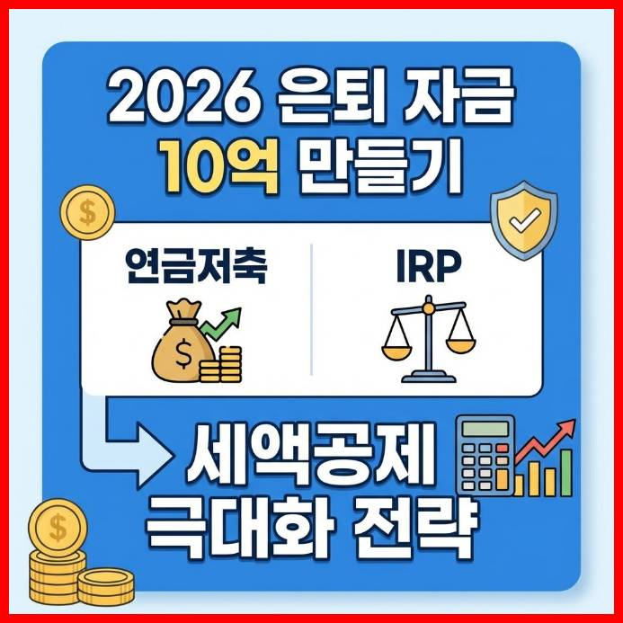 #2026년은퇴자금10억만들기, #연금저축, #IRP, #세액공제, #은퇴준비, #노후자금, #재테크, #투자전략, #연말정산, #절세, #자산관리, #개인연금, #직장인재테크, #꿀팁, #재테크꿀팁, #초보자가이드, #실전재테크, #돈관리